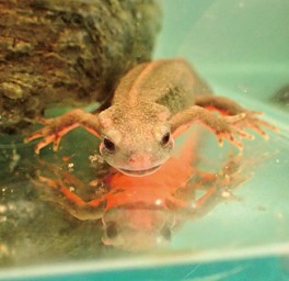 高尾山の麓を流れる案内川周辺にすむ生き物を生体展示。普段は身近で見られない魚やカエル、イモリの姿を楽しんでください。 |